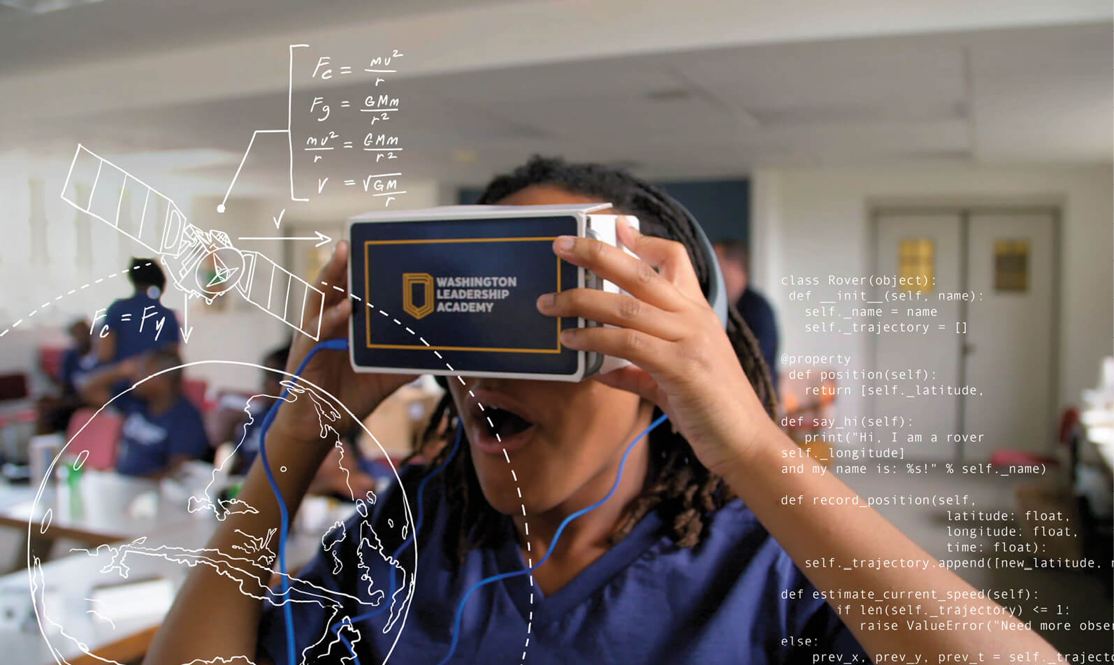 In Washington, D.C., just 30 African American students took AP Computer Science during the 2015-16 academic year. In 2016-17, one school, the Washington Leadership Academy, more than tripled that number. Washington Leadership Academy offers four years of computer science along with opportunities to learn through virtual reality. And it places a strong emphasis on leadership to prepare graduates to take an influential role in digital-age civic life. Students have the opportunity to take electives from part-time instructors with specific, hard-to-find skills in fields such as programming and robotics. And teachers leverage digital tools to personalize learning, tailoring instruction to each student’s interests and needs while tracking each student’s mastery of rigorous standards.