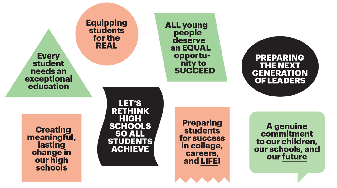 Redesigning high schools to improve student achievement and prepare students for life is a collective responsibility. It requires local effort, led by parents, teachers, students, and community members like you, working together with one another and with the superintendent, to deliver meaningful, lasting change.